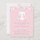 Um convite de aniversário de gatinho branco giro para meninas que amam gatinhos e gatos! O gatinho branco tem um arco cor-de-rosa amarrado na cauda com uma coleira que tem um ícone de pata. Além disso, o gatinho é um bolo com uma vela e uma decoração de peixe. O topo tem bandeiras coloridas para um toque de atmosfera partidária. Paleta colorida de pasta rosa, azul, amarela e branca. Personalize facilmente com seus detalhes de festa de aniversário.