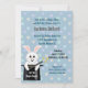 O Convite de Aniversário do Coelho Coelho Bonito tem um coelho doce saindo do chapéu preto de um mágico. O coelho tem uma varinha mágica e as palavras, Que a magia comece. Personalize com detalhes da sua Festa de aniversário de Meninas ou Meninos.