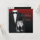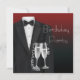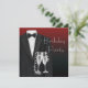 Modelo de smoking preto elegante. Este convite de festas preto e vermelho clássico apresenta um smoking preto e um par de óculos de champanhe e é facilmente personalizado para o seu evento, simplesmente escolhendo o botão "Personalizar!" para começar a adicionar detalhes do evento, estilo de fonte, tamanho de fonte e cor e texto. Observe que todos os designs de cartas e convites que você encontrará no Zazzle são gráficos impressos sem joias reais, arcos, levantados, gravados em relevo ou peças ou peças adicionadas.