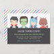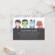 Um convite bonito e colorido para o período do Dia das Bruxas de outubro! Apresenta monstros populares do Halloween reinterpretados em crianças bonitas. Eles apresentam o vampiro, o monstro verde, a bruxa pequena com gato preto e o lobisomem. No verso está um padrão de listras inclinadas. Personalize facilmente com os detalhes do seu partido no espaço fornecido.