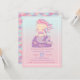 Um doce e giro convite para uma festa de aniversário temida de sereia! Ela apresenta uma sereia fofa com cabelo colorido sentado numa rocha roxa com estrelas. Um fundo de gradiente rosa e azul. Paleta de cores rosa, azul e roxo. No verso está um padrão feito usando escalas de sereia. Personalize facilmente com os detalhes do seu partido, incluindo o número no shell de empacotamento.
