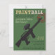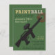 Um convite legal, moderno e bolsa mensageifesta de aniversario elegante com uma espingarda negra de pintball no meio do convite. Tranque-se no alvo! O texto "paintball" não é editável. Um padrão de fio de diamante verde para fundo. Personalizar dentro do espaço alocado. Excelente para adolescentes de idade até adolescentes, especialmente aniversários que adoram a atividade ou o exército ou jogos de tiro.