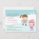 Se a aniversariante adora patinar gelo, planeje uma festa de aniversário temática de patinação no gelo para que ela possa girar, girar e skate com seus amigos! Este convite apresenta duas meninas bonitas vestidas com calor em roupas de inverno como cachecol, jaquetas e chapéu de gorro. Flocos de neve e árvores decoram o fundo. Excelente para aniversários de idade até adolescentes. Personalize facilmente com os detalhes do seu partido.