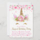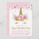 Convites de festas de aniversários de Unicórnio com um adorável rosto unicórnio com bonito e felizes pestanas de ouro e buzinas florais em um belo fundo de bolhas de confetti pastel. Este convite de aniversário unicórnio fofo é facilmente personalizado para o seu evento simplesmente adicionando os seus detalhes. Você também pode mudar a cor de fundo neste adorável convite unicórnio. Este é um design impresso sem brilho real.