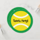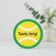 Convites de festas de aniversários de bola de tênis amarelo redondo. Convite para tênis para crianças Aniversário, CHURRASCO, torneio, etc. Texto personalizável e cor de fundo. Design de esporte bonito com nome e idade da criança. Tipografia química. Personalize para jogadores esportivos. O círculo engraçado cortou a forma. Brinquedos para crianças e design de atividades para comemorações. Faça convites circulares para o 4º 7 de 6 de 5 de 13 de 8º de 9º de 12 de 11 de 10º de Bday etc. Acessórios personalizados para treinador esportivo/mãe e pai de futebol.