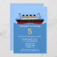 Fazem seus barcos e navios de amor da criança? Então amará estes convites personalizados do aniversário caracteriza uma navigação psta do navio de cruzeiros do tempo vapor velho na água azul brilhante.
