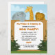 Estes convites de festas de aniversários personalizados adoráveis são grandes para os miúdos que amam animais do jardim zoológico. Cada convite caracteriza uma ilustração encantador de um elefante, de um leão e de um girafa espreitando sobre uma cerca. Os convites estão prontos para personalizar para um partido no jardim zoológico, ou uma festa de aniversário jardim-temático ou safari-temático.