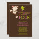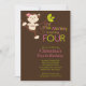 Enfie sua quarta festa de aniversário fora do direito com nossos convites de festas adoráveis do aniversário de criança do macaco da menina. Aperfeiçoe o convite para você 4o celebração da festa de aniversário! Nossos convites pequenos doces do macaco caracterizam um macaco bonito da menina que balança em um ramo de árvore e são ajustados em um fundo marrom à moda. Nosso convite de aniversário da menina do macaco caracteriza um macaco pequeno original com um chapéu do partido & balloons o fundo. Visite nossa loja para o obrigado de harmonização você cartões de nota, etiquetas do aniversário, obrigado etiquetas e selos postais. © pequeno Tatti