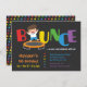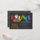 Salte sobre sobre e comemore com o menino do aniversário! Este convite tem o salto da palavra no tamanho de pia batismal grande com cada letra em uma cor diferente! A letra o é substituída criativa com um trampolim redondo e um menino no T branco e em shorts azuis está saltando feliz nele. No reverso a página é um teste padrão criado usando pontos e cores do arco-íris. Para qualquer um que hospeda a festa de aniversário em parques internos do trampolim ou em seu próprio quintal. Personalize com seus detalhes do partido no texto colorido.