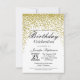 Elegante, moderno e chic faux gold imprimiu escarpas de confete, Convites de festas de aniversários. Este design clássico e sofisticado é perfeito para o indivíduo clássico, na moda e tradicional de Aniversário. Personalize com sua própria mensagem na frente e monograma personalizado no verso. Todos os impressão