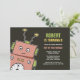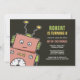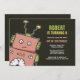 Convites de festas temáticos do divertimento e do aniversário de criança do robô bonito. As características de design um robô cor-de-rosa feliz contra uma obscuridade modelaram o fundo. Aperfeiçoe para as meninas. Personalize com sua própria informação do partido. © Lisa Marie Robinson de Copyright. Todos os direitos reservados. É ilegal para usar ou duplicar isto, ou alguma de nossas imagens, sem autorização escrita.