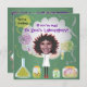 A sua garota quer ser louca? Um cientista louco que é! Os fumos e fumos vazam de tubos de ensaio, copos e frascos de globo ocular, lagartos e cérebros cor-de-rosa contra um quadro verde. Não muito assustador, só a quantidade certa de diversão. Use qualquer foto da escola ou vire uma foto clara para a frente e amplie para o ajustado para que a peruca louca pareça seu cabelo. As costas têm muito espaço para as suas informações de festa. Ilustração desenhada à mão por McBooboo.