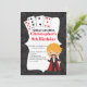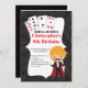 Comece seu partido mágico fora do direito com nosso convite de aniversário mágico mágico da mostra que caracteriza um mágico bonito ajustado em um fundo preto do damasco com uma plataforma de cartões. Inteiramente customizável por você com sua informação. ©Corazón Dulce