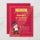Um convite combinar sua festa de aniversário mágica da mostra! Tem um rapaz pequeno bonito em um equipamento do mágico da jaqueta preta do tailcoat, do chapéu alto e do laço cor-de-rosa. Está acenando uma varinha mágica em sua mão. Fundo vermelho com os pontos amarelos para a beira. O excelente para os partidos onde você contrata mágicos ou se o menino do aniversário gosta de executar truques mágicos. Personalize facilmente com seus detalhes do partido.