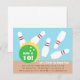 Um convite de aniversário moderno, minimalista e elegante da boliche para os miúdos mais velhos e os adolescentes que preferem um partido menor com amigos próximos sobre um jogo da boliche do divertimento! Tem uma bola de boliche verde fazer uma greve contra os pinos de boliche vermelhos e brancos e enviar-lhes o vôo! Personalize facilmente com os detalhes do partido que incluem a bola de boliche.