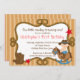 Enfie sua festa de aniversário pequena doce do vaqueiro fora do direito com nosso convite bonito do aniversário de criança do vaqueiro do bebê que caracteriza um vaqueiro do bebê que monta um cavalo de balanço que veste uma fralda azul, as botas de vaqueiro e o chapéu de vaqueiro ajustados em um fundo marrom da listra. Bonito para uma festa de aniversário ocidental para o primeiro aniversário de um bebê. Visite nossa loja para ver o outro obrigado bonito dos convites de festas de aniversários & da harmonização você notas, etiquetas & selos postais. Ilustrações do © JW
