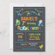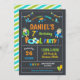 Incrível Boys Piscina Party Chalkboard Personalised Invtions. Excelente para qualquer idade! Personalize-o com os detalhes do seu partido de forma fácil e rápida, basta pressionar o botão personalizá-lo para reorganizar e formatar o estilo e o posicionamento do texto. Inclui uma faixa verde e turquesa na parte de trás do convite. c) O Happy Cat Studio Todos os direitos reservados
