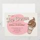 Convites de festas do sorvete com um design retro do rosa, o marrom e o esbranquiçado. Personalize o texto para caber qualquer tipo de partido temático do sorvete.