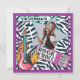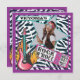 Agarra-te com este fantástico e super divertido convite de aniversário rock n' roll, rock star star. Sala para as informações da sua festa no verso, a frente apresenta uma guitarra flamejante, um ingresso de concerto, estrela com a foto da sua criança, tudo em um fundo de impressão zebra. Basta substituir a foto mostrada pela foto do seu filho clicando em "mudar imagem". Ilustração desenhada à mão por McBooboo.