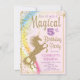 Convites de festas de aniversários de Unicórnio com unicórnio dourado sobre um belo fundo do arco-íris. Você pode alterar a cor do plano de fundo para a sombra preferida e é facilmente personalizado com seus detalhes. Este é um design impresso sem brilho real, faíscas, etc.