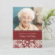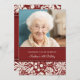 Convites de festas de aniversários feitos sob encomenda do 90 da foto no vermelho elegante, no creme e no teste padrão floral clássico branco do vintage do damasco. Adicione seus nome, foto, e detalhes do partido para um convite de aniversário original e à moda.