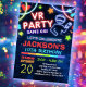 convite para aniversários de jogos de realidade virtual em cores brilhantes do arco-íris neon para rapazes e raparigas