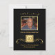Convites de festas de aposentadoria personalizados — Convites de fotos em preto e ouro elegantes, mas masculinos, com sotaques dourados detalhados e monogramas em parlamento simulado. Adicione sua própria foto e personalize o nome, a data e os detalhes para qualquer ocasião feliz. Perfeito para fotos contemporâneas ou antigas. Combinando envelopes, correio e cartões de agradecimento disponíveis. **NOTA: Dimensionado para cartões de convite padrão 5 x 7. Outros tamanhos e estilos disponíveis na galeria.