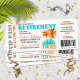 Convite de festas de aposentadoria de "cartão de embarque", tema tropical divertido. Personalize todos os detalhes para sua próxima celebração.