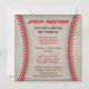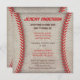 Um convite de festas de beisebol divertido que realmente se parece com um close up de um beisebol. Este convite é vermelho e uma cor e excelente acastanhados para uma festa de aniversário ou evento desportivo.