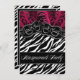 Zebra Black Hot Pink & Silver Mask - Mascarada Ball Convites de festas - apresentam duas máscaras em preto com trim prateado e penas rosa quente sobre um fundo zebra. Você pode usar estes convites para qualquer ocasião que você escolher — um aniversário, doce 16, quinceanera (doce 15 anos), festa temática, e qualquer outro tipo de evento. Estes convites à apresentação de mascarada são preparados para uma reserva de cartão de alta qualidade; no entanto, você pode fazer o upgrade para a roupa, várias variações de metal e muito mais. Cada convite tem um envelope branco.