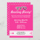 convites de festas de boliche para a festa de aniversário da menina. Texto personalizável e cor de fundo. Altere de rosa quente para qualquer outra cor. Na parte traseira do convite há um padrão de bolinhas bonito, mas que pode ser excluído para mais espaço de texto. Divirta-se na beco da boliche com todas as crianças!