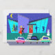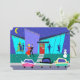 Esses Convites de festas de Cartoon de Férias Retroativas Personalizáveis o colocarão no espírito de feriado. A design apresenta o exterior de uma casa moderna de meio século. Através do chão até as paredes de vidro de turquesa no teto, podemos ver as silhuetas azuis marinhos de gajos festivos. Há um casal a bater papo em frente a uma árvore de Natal verde, que é decorada com ornamentos lacrimogêneos. Do lado oposto da sala, podemos ver um homem dançarino e o homem de longa-ventura que todos estão tentando evitar. O exterior da casa apresenta uma porta vermelha alegre com uma coroa de férias, uma lareira de tijolos roxos sobredimensionada e cordões de luzes de Natal coloridas. Uma passagem de cinza está cortando uma faixa até a porta da frente, através da grama da floresta. A cena noturna tem um céu azul escuro com uma lua amarela e crescente. O boneco de neve plástico que decora o pátio da frente está sendo saudado pelos primeiros turvos de neve da estação. Um casal atraente está fazendo o cha-cha-cha a caminho do carro. A loira está vestindo um vestido vermelho brilhante. Ela está segurando um erro de erro em uma mão. Sua escolta bonita está vestindo um terno preto e uma gravata vermelha. As mãos dele estão envoltas na cintura da mulher. Na rua, em frente à casa, podemos ver três carros clássicos de cor brilhante. O lado oposto do convite apresenta um fundo turquesa e muito espaço para personalização com as especificidades do seu próprio partido. Peça hoje e festas como se fosse 1959!