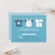 Celebre com a mamãe quem está esperando uma pequena pancada com uma festa de chá de fraldas de basebol! Excelente se os pais são fãs de beisebol! Este convite de chá de fraldas de basebol moderno e clássico tem três bonitinhos de beisebol em uma linha de roupa. Uma paleta colorida de azul e branco que a torna mais adequada para um menino. Personalize facilmente com os detalhes da festa.