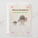 Tão Bonita! Mamãe Coruja segura uma margarida rosa na boca e Papa Coruja veste um bigode, enquanto o bebê fica ao lado de sua mamãe. Bonito faixas cor-de-rosa e verde e tipografia contra um fundo vintage rústico com penas cor-de-rosa. chá de fraldas excelente para a natureza moderna, pais da floresta.