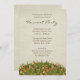 convite de festas de colheita com tema de outono, com folhas e gramíneas.