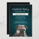 Convites de festas de coquetel de téal Damask Pug & Wine.