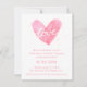 Amor e romance no ar, hora de celebrar com seus entes queridos! Este elegante convite de festas de Dia de os namorados tem um coração criado usando a aquarela vermelha com a palavra amor em escrevendo cursivo no meio dele. Pequenos pedaços de aquarela perto do coração. No verso está o padrão de listras brancas inclinadas sobre uma textura de aquarela. Adicione os detalhes da parte do dia de os namorados no espaço fornecido.