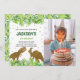 Celebre o aniversário do seu explorador com estes convites de aniversário para Dinossauro Verde! Com um vibrante design de dinossauro verde, estes convites personalizáveis permitem adicionar uma fotografia pessoal para um toque único. Perfeito para uma festa de aniversário temática de dinossauros, estes convites irão adicionar uma vibração divertida e aventureira ao dia especial do seu filho. Ordene agora que o aniversário do seu filho seja um grande sucesso!