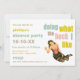 Viva! Você finalmente está livre! Convites de festas De Divórcio Retro Divertido. Imagem de uma garota vintage em cima e saia com meias e roupas (suspenders), segurando uma bebida em comemoração. O texto de um lado diz: fazendo o que eu gosto, em texto azul, verde e marrom. Totalmente personalizável para você adicionar seus próprios detalhes maravilhosos de liberdade!