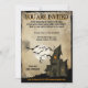 Convites de festas De Halloween. Convites especiais e divertidos com uma casa velha assustadora, morcegos e uma lua em cima. Fundo azul moody. Basta entrar nos detalhes da sua festa e ir!