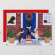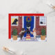 Convites de festas de Natal para Labradores.Quadro Whimsical e fofo Labrador Retriever pintado por Naomi Ochiai do Japão. Legal para amantes de cachorro que amam Labradores! O Black Labrador e o Chocolate Labrador e o Yellow Labrador estão todos pintados na foto. Os cães felizes do Labrador estão decorando a coroa de Natal na porta por virem o Natal com alegria. Você pode personalizar texto e muito mais!