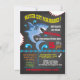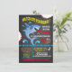 Cuidado com os tubarões! Super legal Aniversário de Tubarão Nadando Convites de festas com um tubarão zangado, com marcas de picada falsas (você pode cortá-las com uma tesoura) em um fundo de quadro. Ilustração desenhada à mão por McBooboos.
