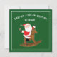 Uma festa de feriado moderna e engraçada convida a apresentar Papais noeis em um cavalo de balanço e linha humorística.