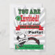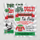 Festa de Natal de suéter feio e super divertida com uma sensação retrógrada. Inscrições modernas, faixas e um suéter feio contra um fundo de explosão solar. O verso é um excelente como a frente com a antiga arte de clipe do Retro Papai Noel e informações sobre a festa. Ilustração desenhada à mão por McBooboo. Para fazer mais mudanças, vá para Personalizar este modelo. Na parte inferior você verá "Quer personalizar este design ainda mais? Clique em EDIT usando a ferramenta Design. A partir daí você pode mudar algumas fontes e algumas cores, mover coisas ou excluir o que você precisa.
