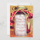 Um convite de festas de Natal rústico com um jarro de mason com fita vermelha e etiqueta de Papai noel rústica pendurada no lado do jarro de mason. Adicione seu próprio texto de convite de festas a este modelo. Se precisar adicionar ou excluir linhas de texto, use o botão "Personalizar". O verso do convite é vermelho sólido.