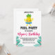 Prepare-se para um paraíso tropical com nossos Convites de festas de Piscina de abacaxi! Estes convites na moda e modernos apresentam um vibrante design de abacaxi contra um pano de fundo das folhas de palma, criando uma atmosfera divertida e convidativa. Perfeito para uma festa de piscina de verão, estes convites darão o tom para uma celebração memorável.