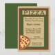 Comemore um aniversário marcante com estes convites para festas de pizza. O convite tem pizza de queijo e pepperoni em fundo verde e bege. Perfeito para festas de aniversário de crianças.