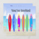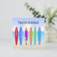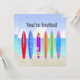 Possui um fundo de praia com areia, oceano e céu, 6 pranchas coloridas. Texto estilizado na frente é Você é Convidado. O texto é configurado no verso para adicionar os detalhes do evento. Na moda & Convite de festas de Verão disponível em dois tamanhos; 5x7 e 5,25x5,25. Adicione seus detalhes à frente e atrás, simplesmente escolhendo "Personalizar!" para começar a adicionar detalhes do evento, estilo da fonte, tamanho da fonte e cor e texto.
