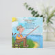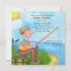 Tema de pesca divertida convites de festas de aposentadoria com céu azul, fundo do lago e do pasto e homem sentado em um tronco de pesca, caixa de ataque e isco. Este design único é perfeito para um homem se aposentar. O Nome, Data, Local e Texto RSVP está pronto para você personalizar com suas informações.