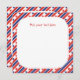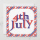 Convite de festas de 4 de julho com o texto de 4 de julho. O convite é enquadrado com uma borda de listras e estrelas vermelhas e azuis.